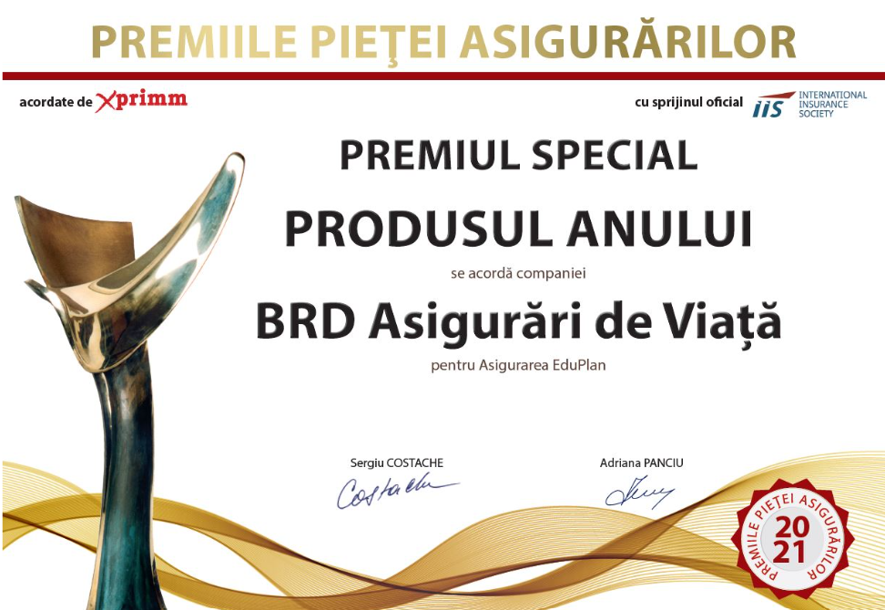 Premiul Produsul Anului pentru asigurarea EduPlan, în cadrul Galei Premiilor Pieței Asigurărilor. Acordat de revista XPRIMM pentru caracteristicile diferențiatoare oferite cu scopul unui start bun în viața copilului: